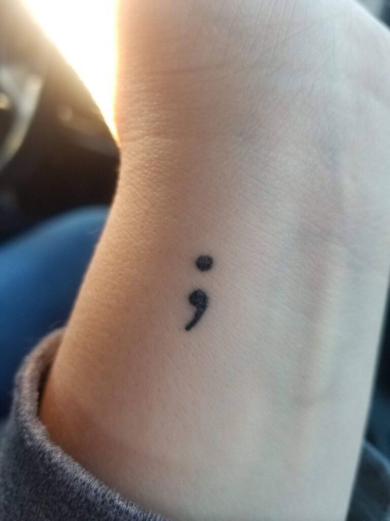 Among the simplest designs, the semicolon tattoo carries a deep meaning within the mental health community. Like a semicolon in writing that marks a pause but not the end of a sentence, it symbolizes choosing to continue despite suicidal ideation, depression, and anxiety.
